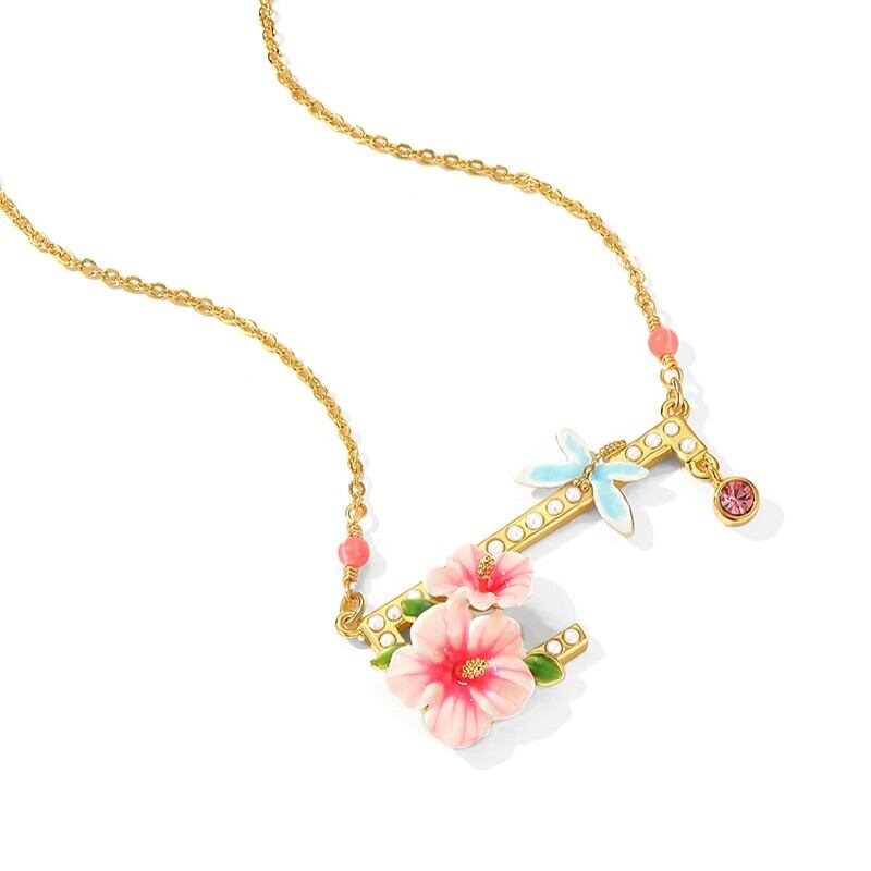 Hibiscus & Dragonfly Necklace / ハイビスカス & トンボ ネックレス