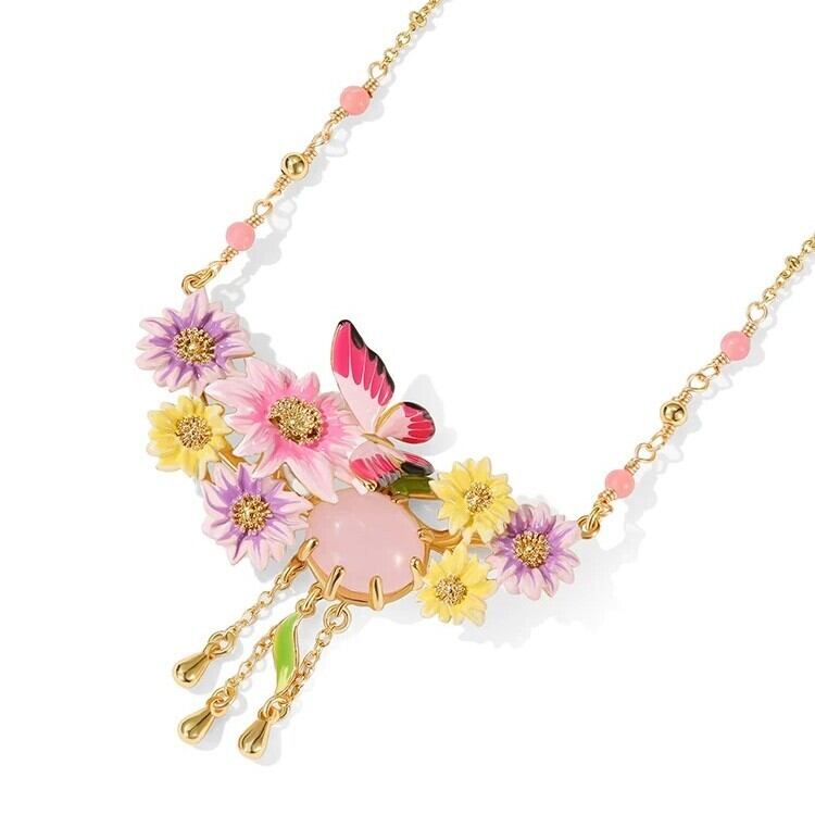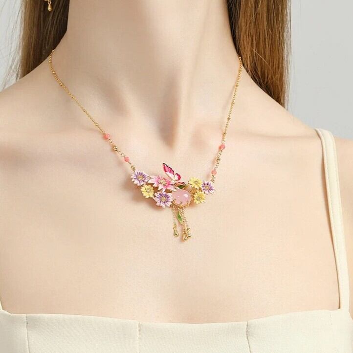 Butterfly Flower Charm Necklace / バタフライ フラワー チャーム ネックレス