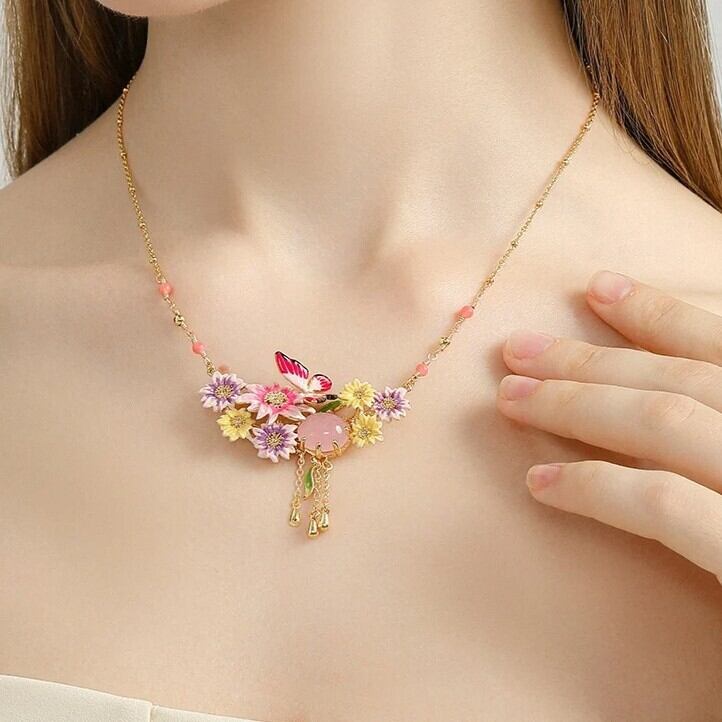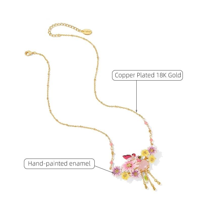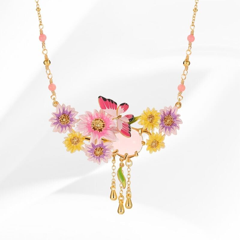 精巧な手描きのエナメル細工で、カラフルな花と蝶のディテールが表現されています。