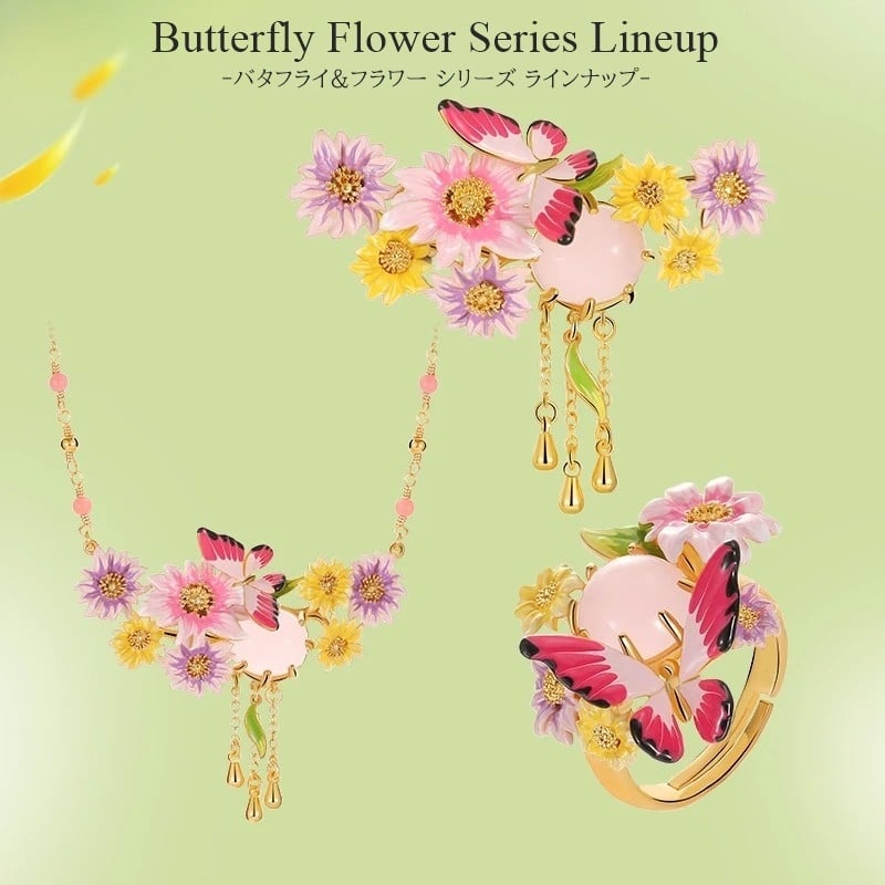 チューリップからインスピレーションを得た【Butterfly Flower Series -バタフライ&フラワー-】のアクセサリー。