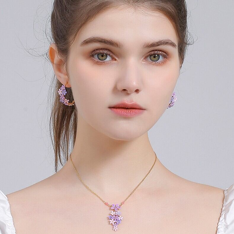 紫と淡いピンク色が美しい、ギフトにピッタリのアクセサリーです。