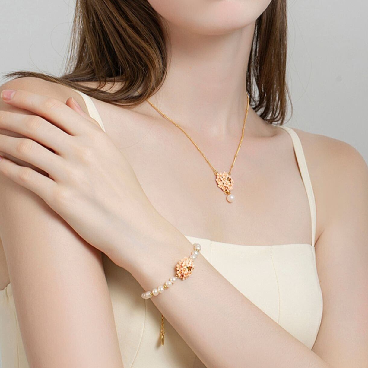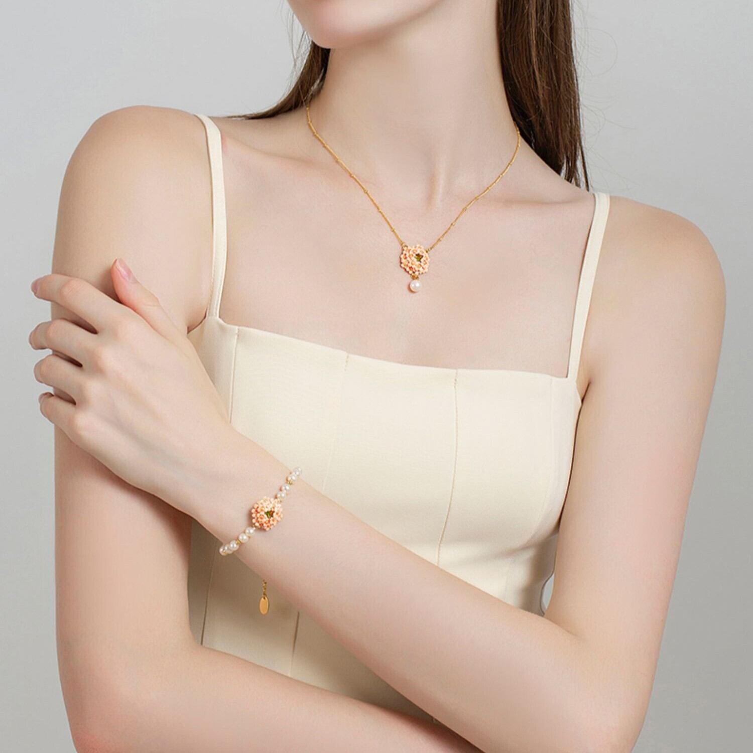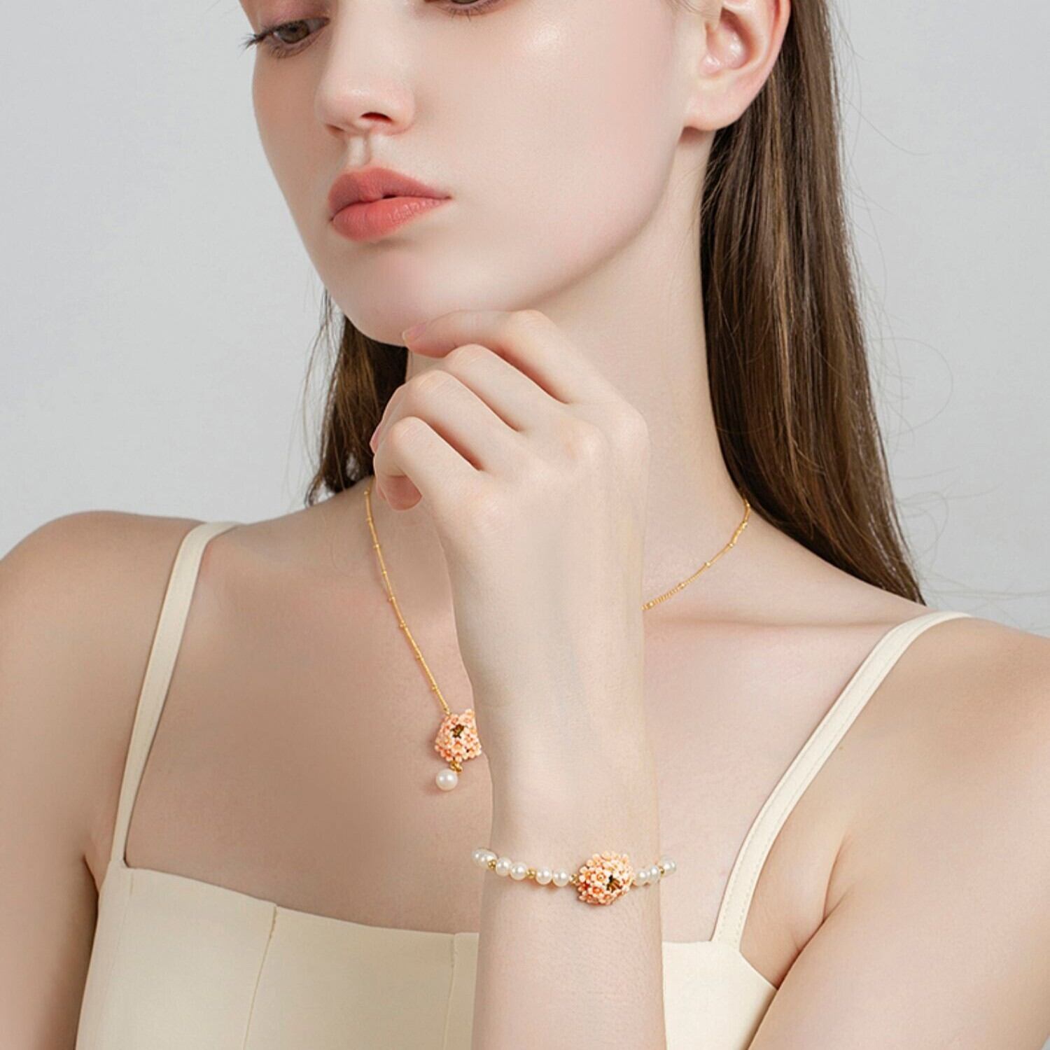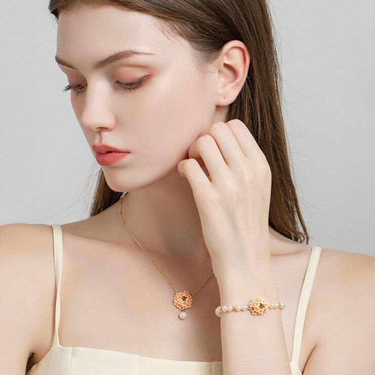淡いピンク色が美しい、ギフトにピッタリのアクセサリーです。