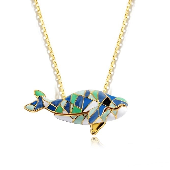 精巧な手描きのエナメル細工で、クジラのディテールが表現されています。