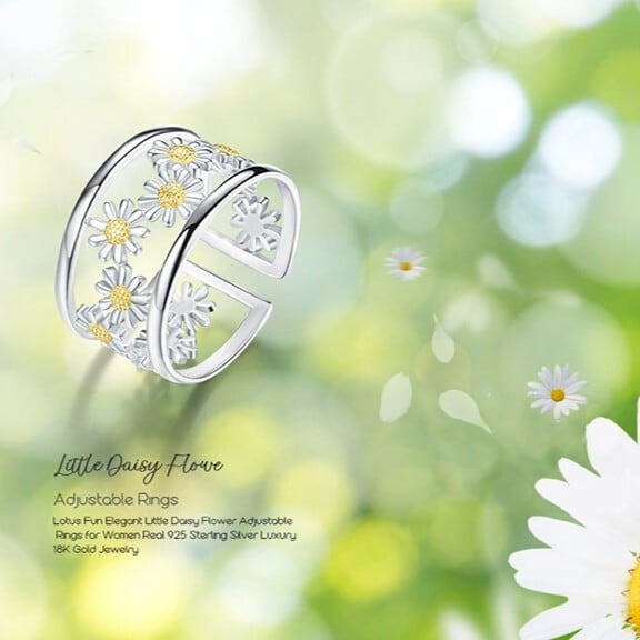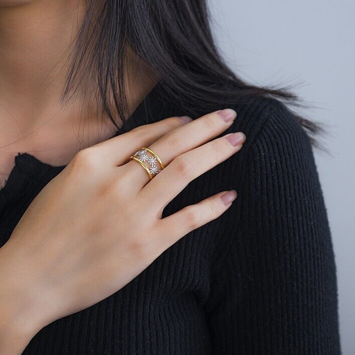 可愛いデイジーが散りばめられたクリアデザインの指輪。