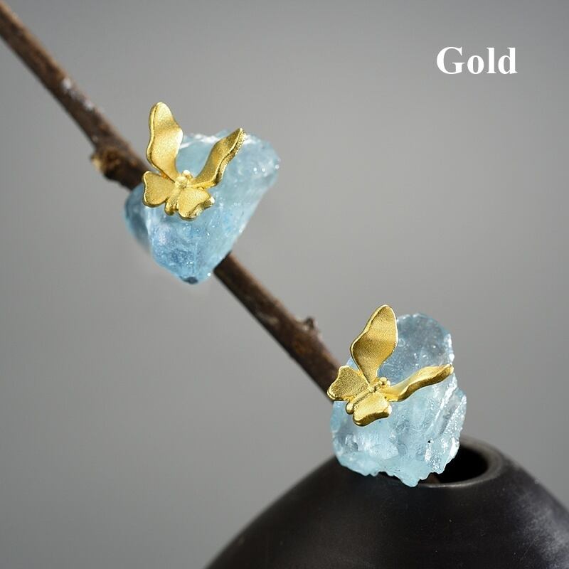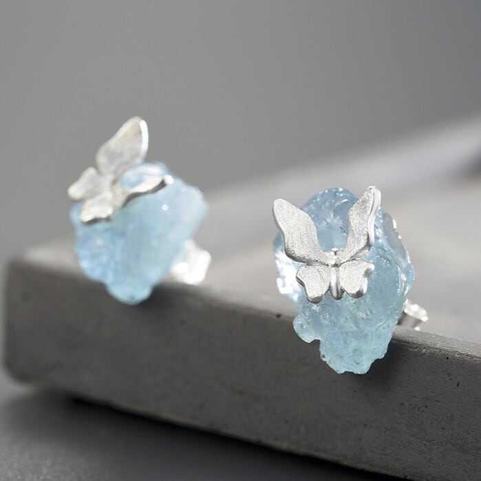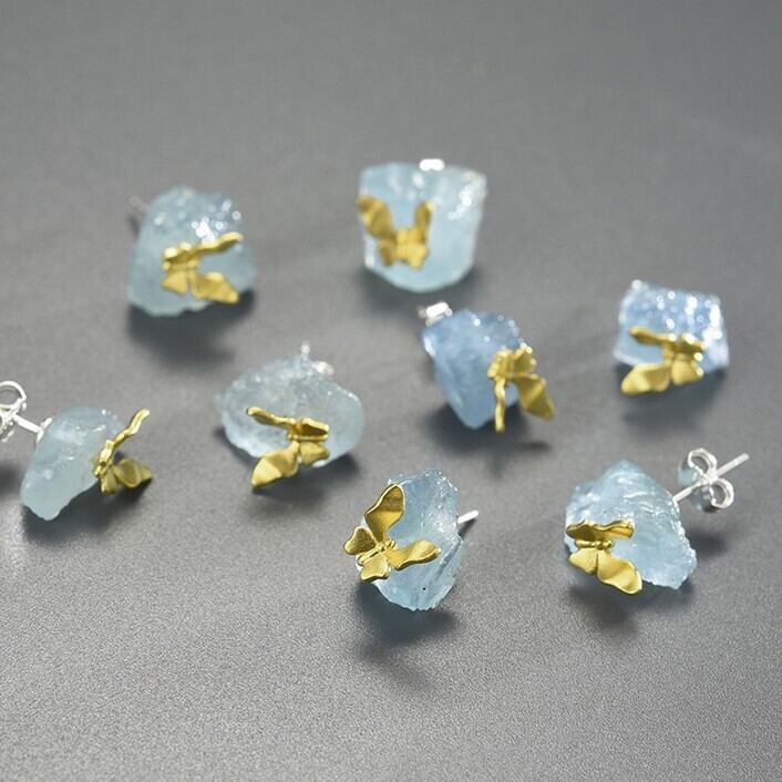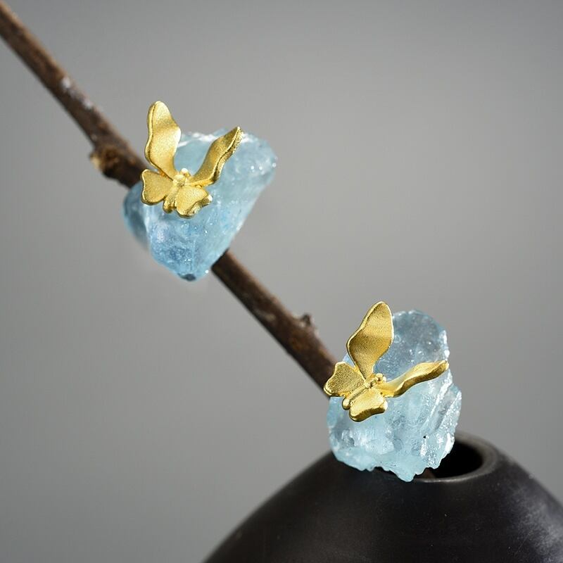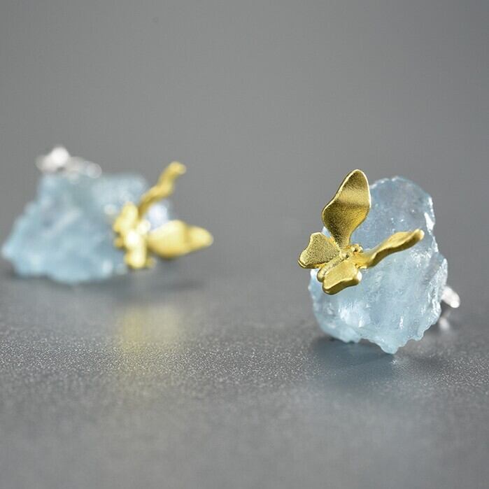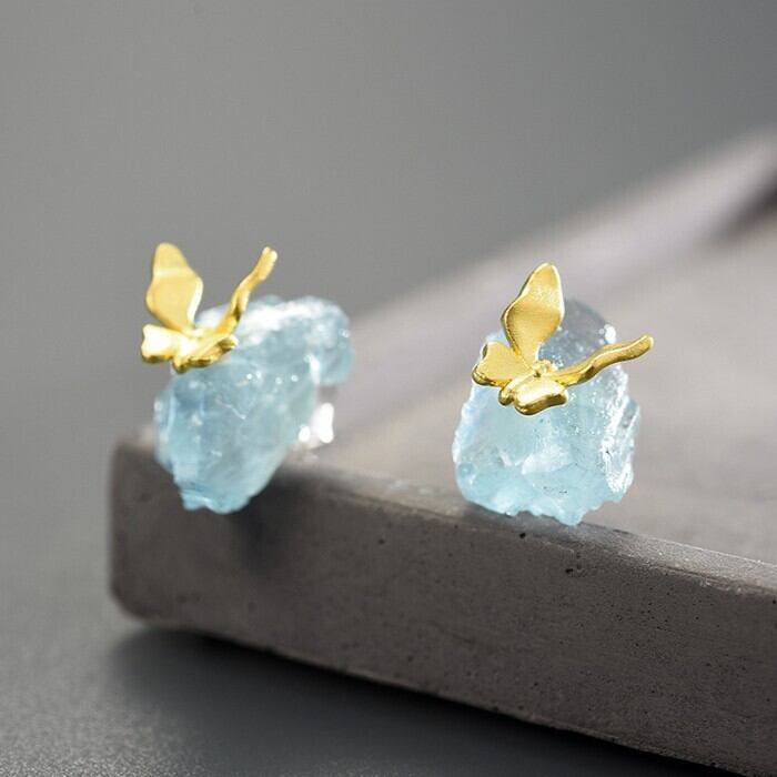 Butterfly Aquamarine Stud Earrings / バタフライ アクアマリン ピアス