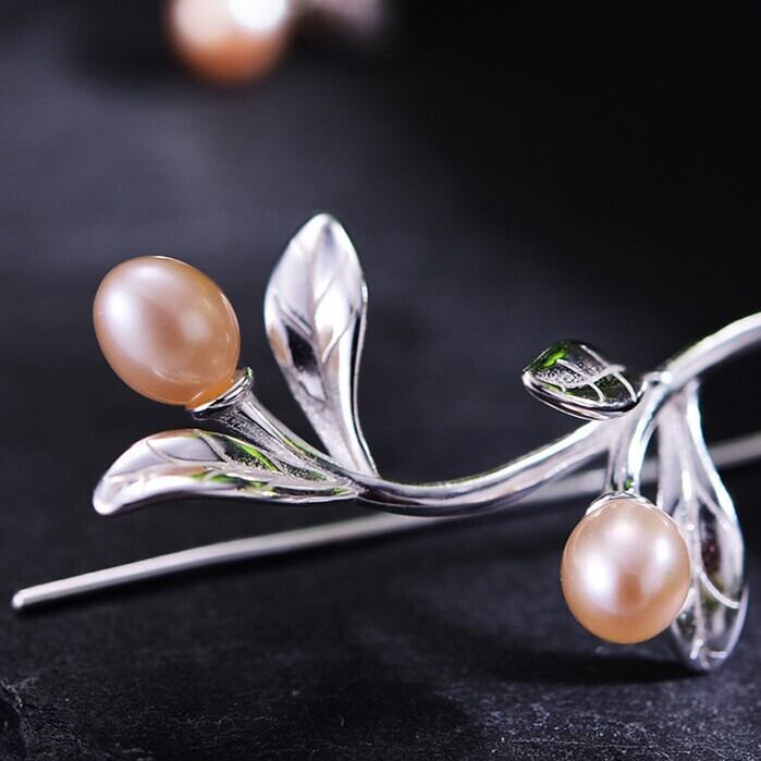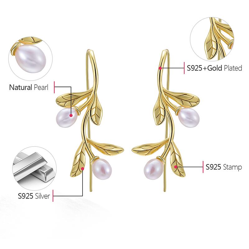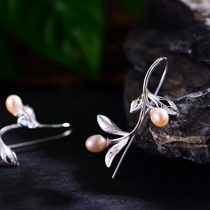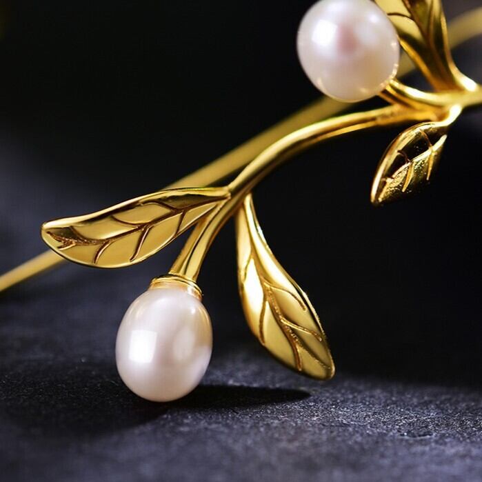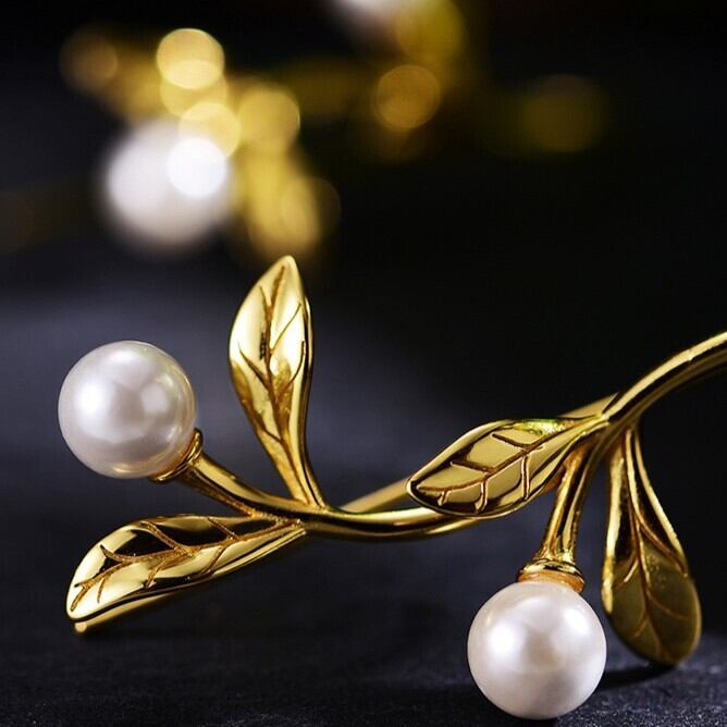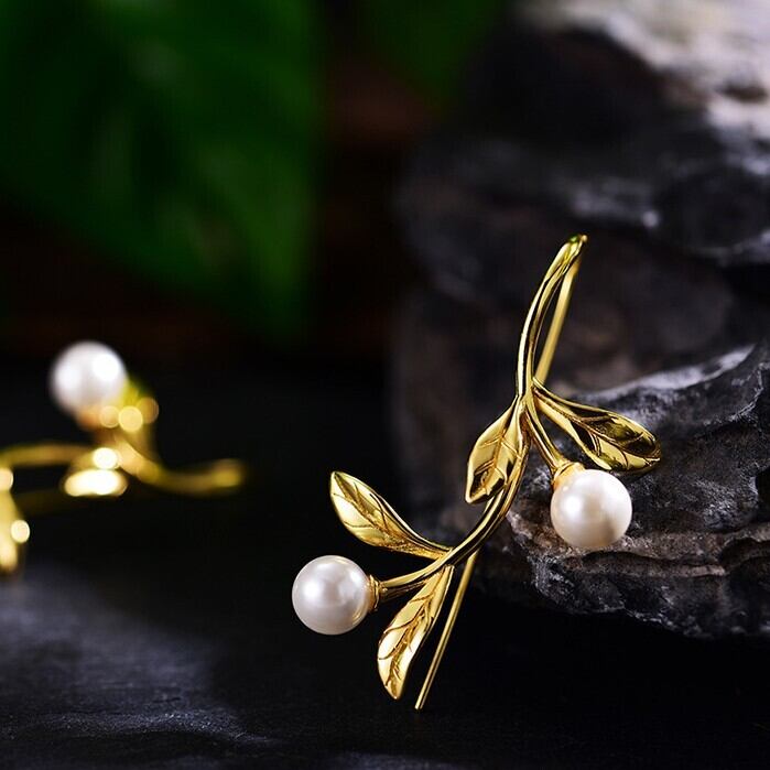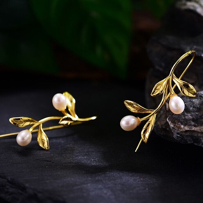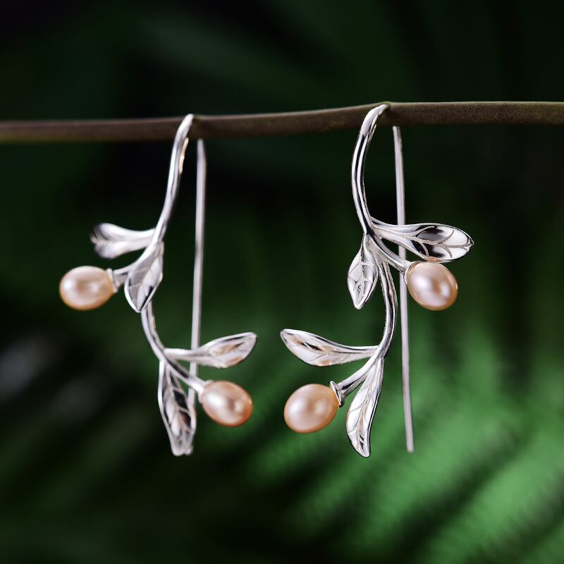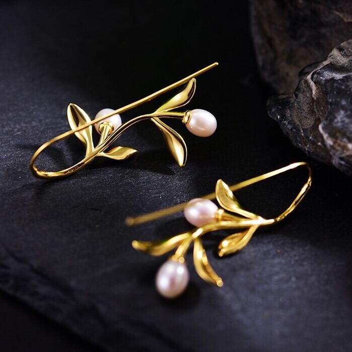 オリーブの実と枝をモチーフにしたダングルピアス。