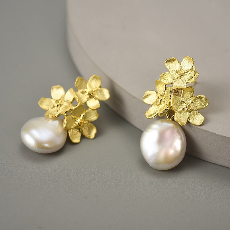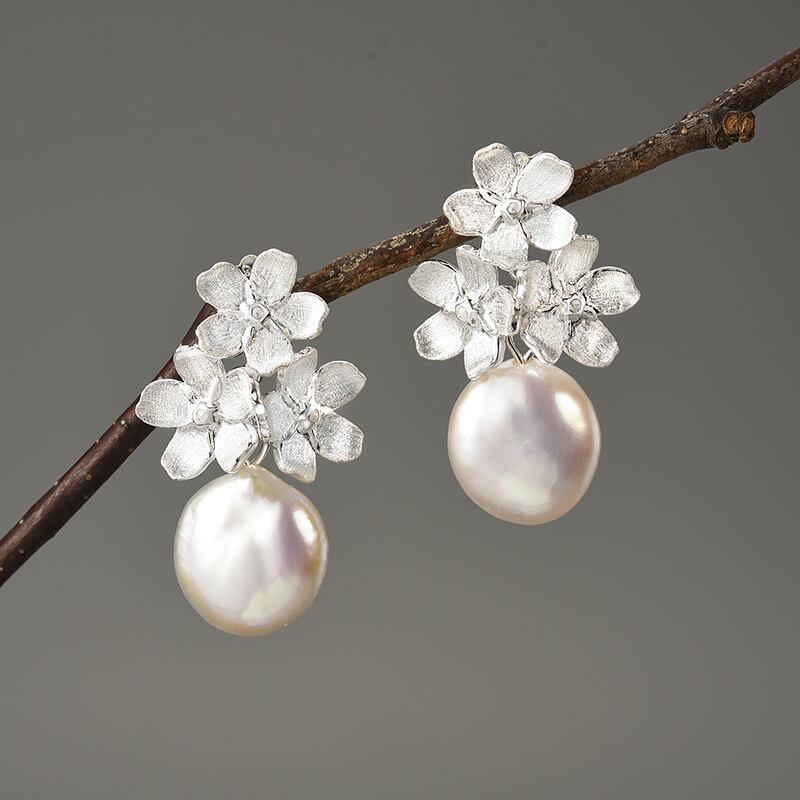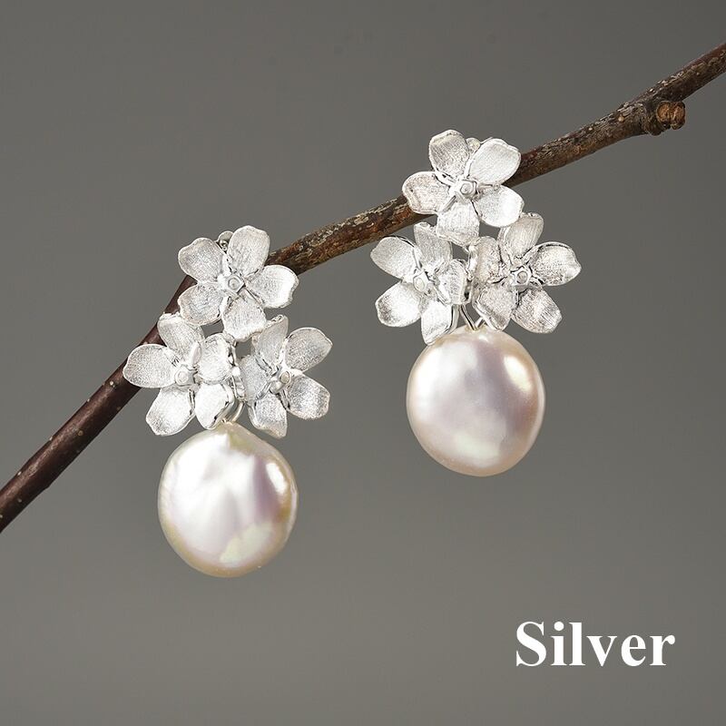 Baroque Pearl Forget-me-not Earrings / バロックパール ワスレナグサ ピアス