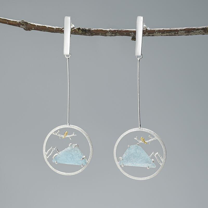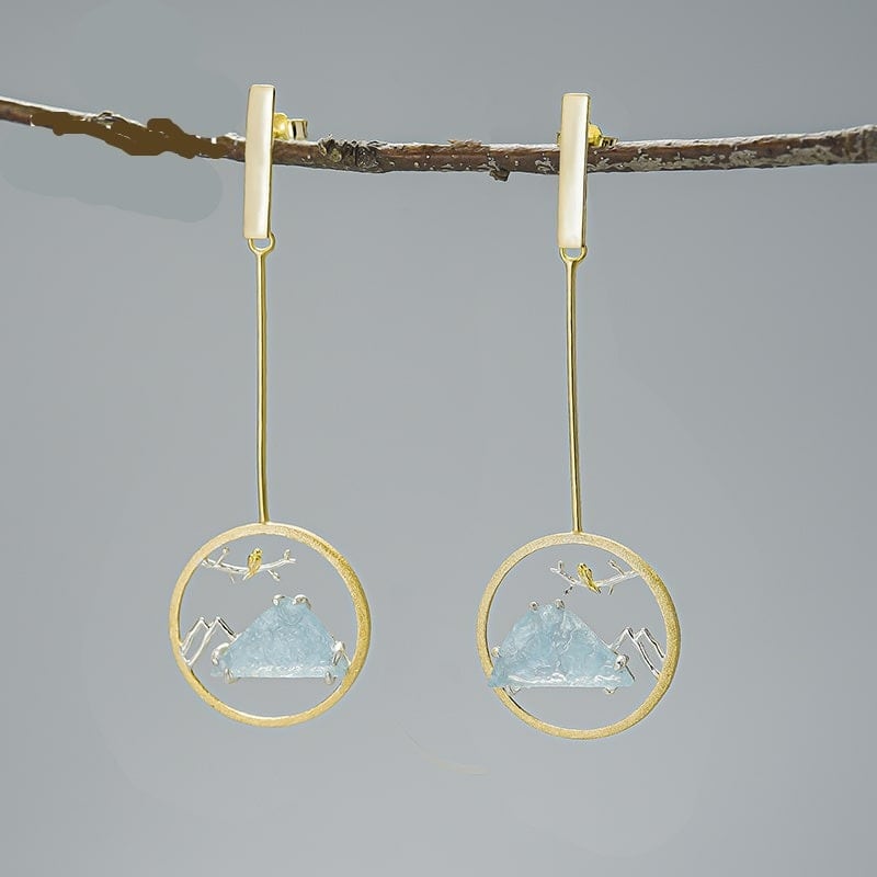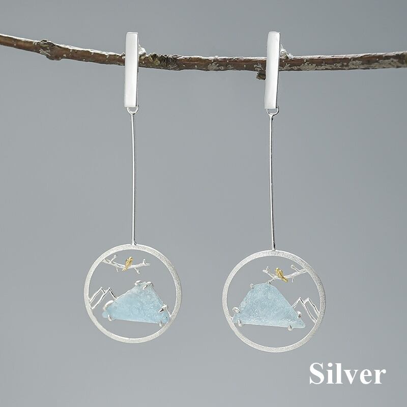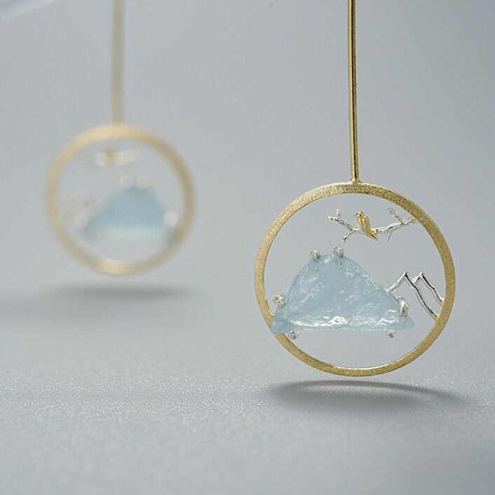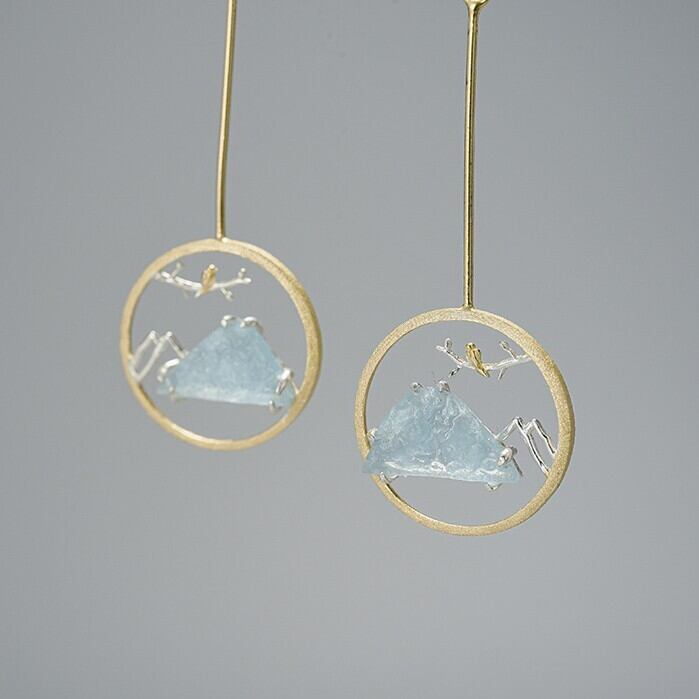 Aquamarine Mountain Bird Dangle Earrings / アクアマリン マウンテン バード ダングル ピアス