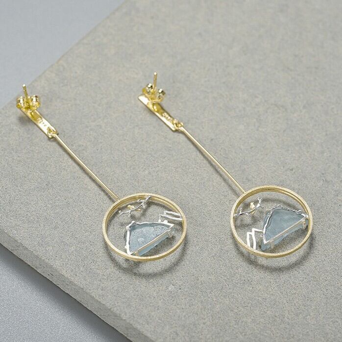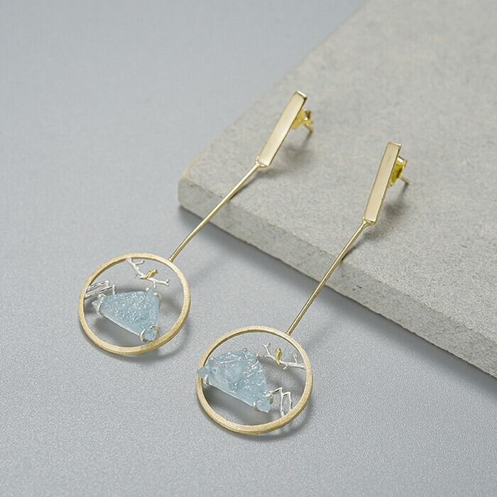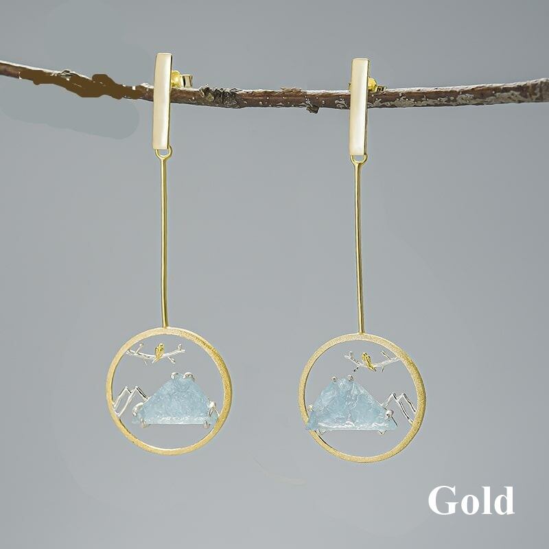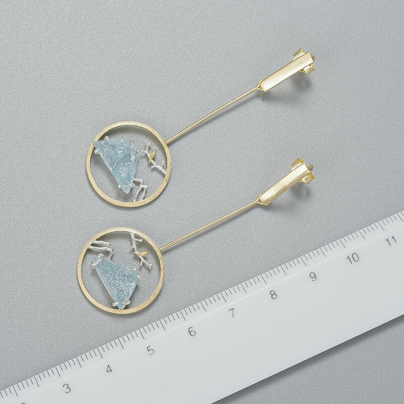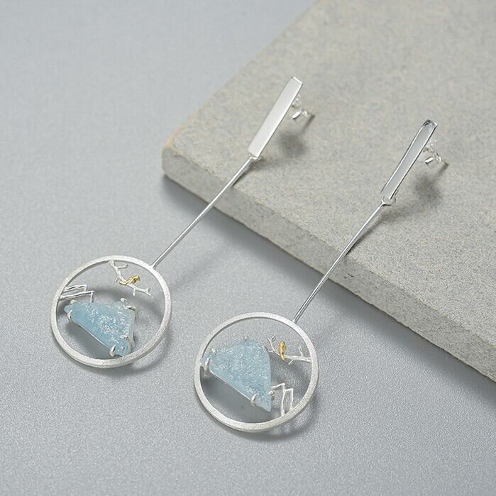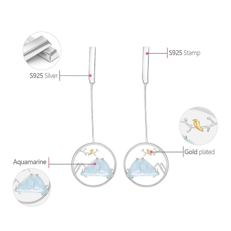 Aquamarine Mountain Bird Dangle Earrings / アクアマリン マウンテン バード ダングル ピアス