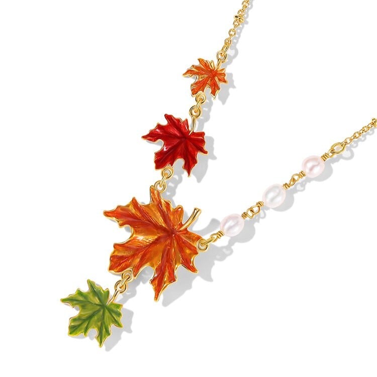 精巧なエナメル彩色で、赤・橙・緑が織りなす美しい紅葉のグラデーションを表現しました。