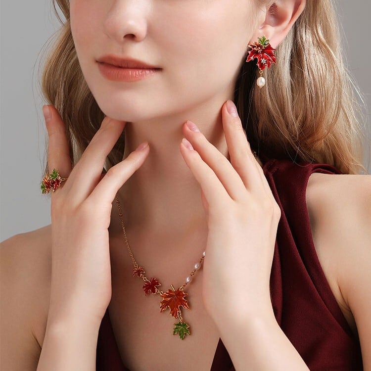 紅葉の鮮やかな色彩を閉じ込めた【Maple Leaf Series -メープルリーフ-】のアクセサリー。