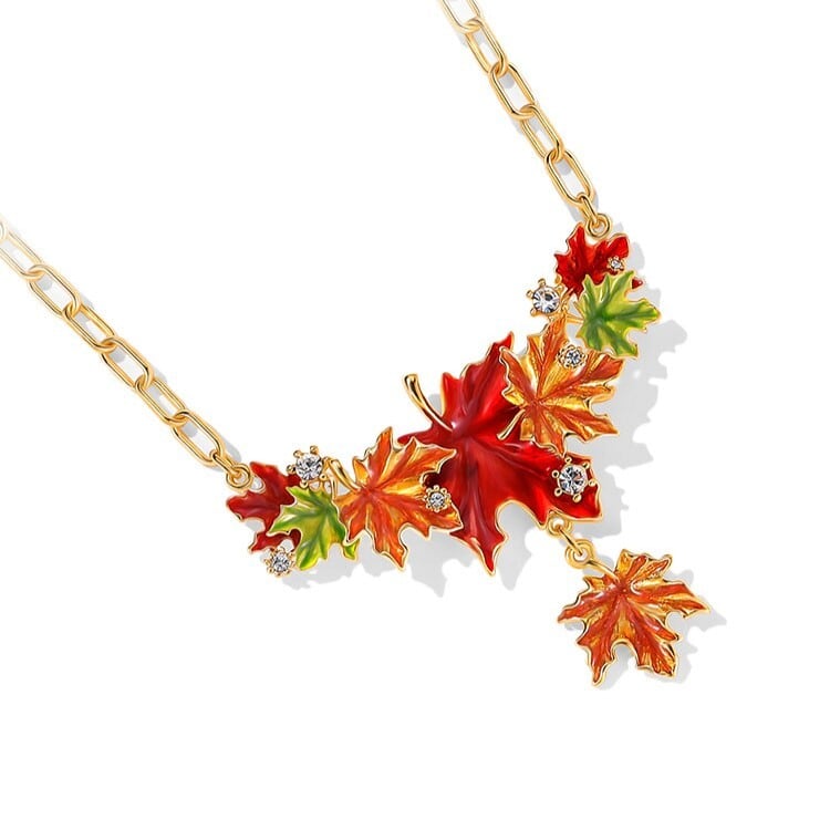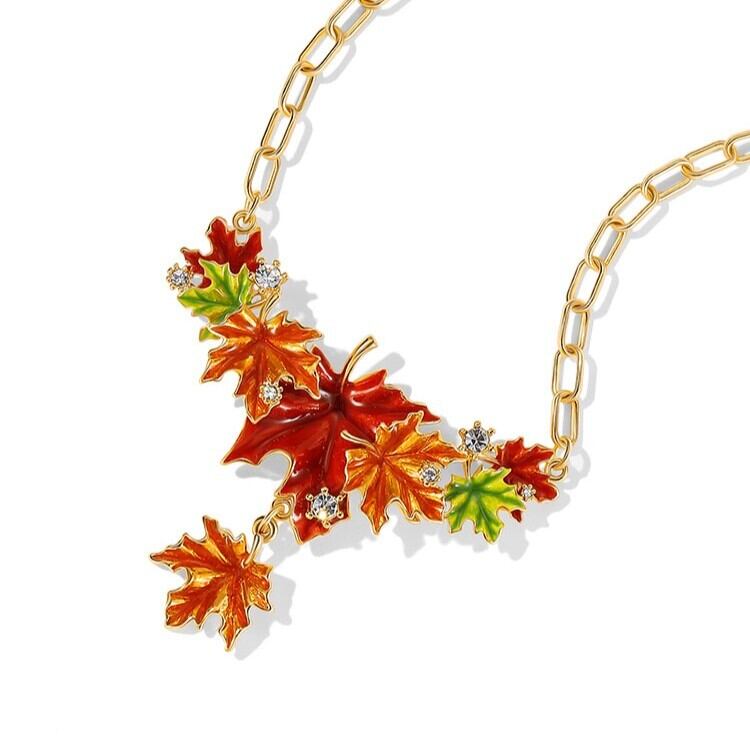 精巧なエナメル彩色で、赤・橙・緑が織りなす美しい紅葉のグラデーションを表現しました。
