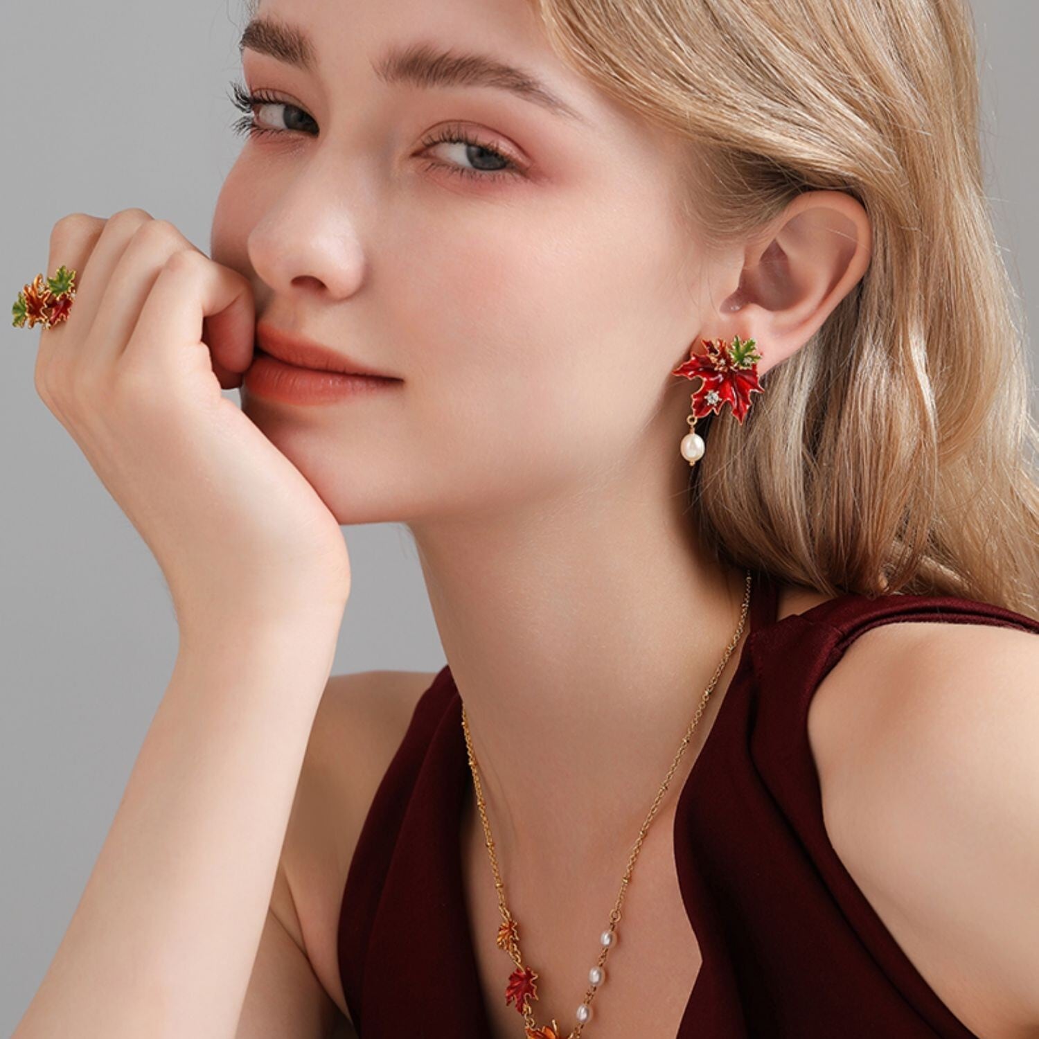 紅葉の鮮やかな色彩を閉じ込めた【Maple Leaf Series -メープルリーフ-】のアクセサリー。