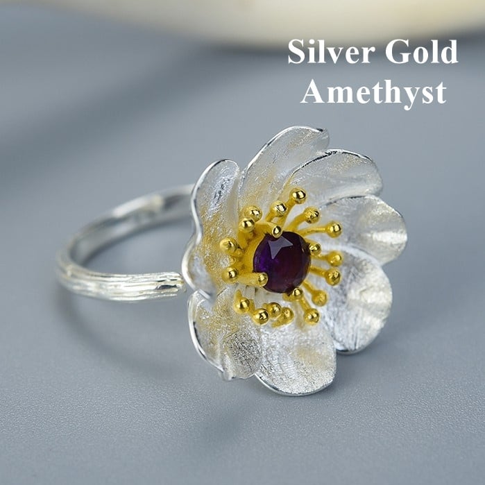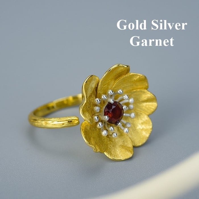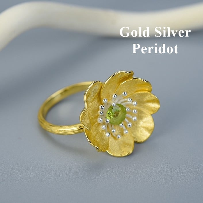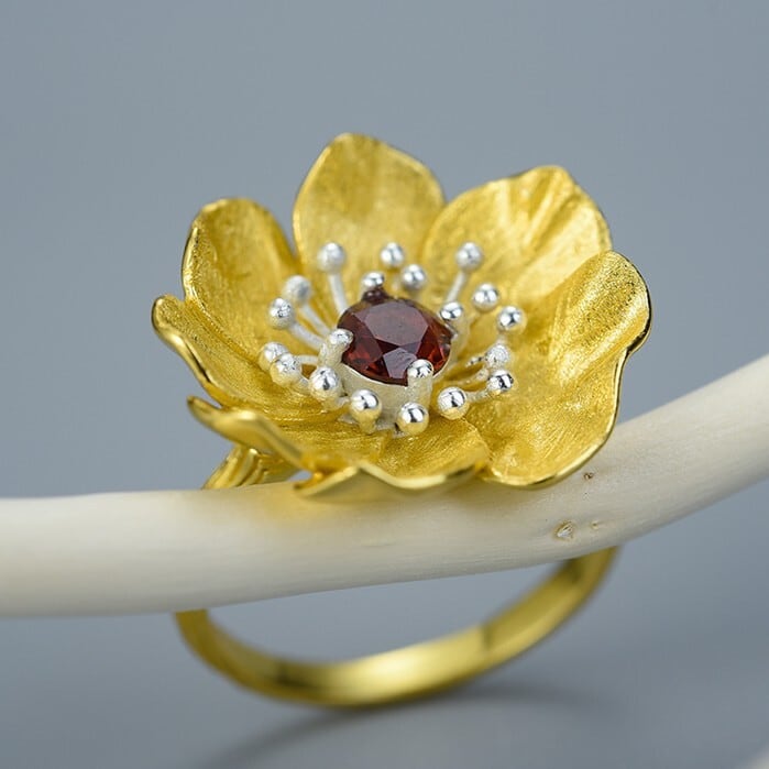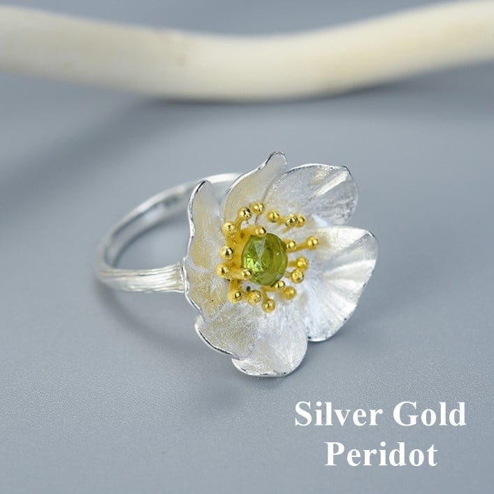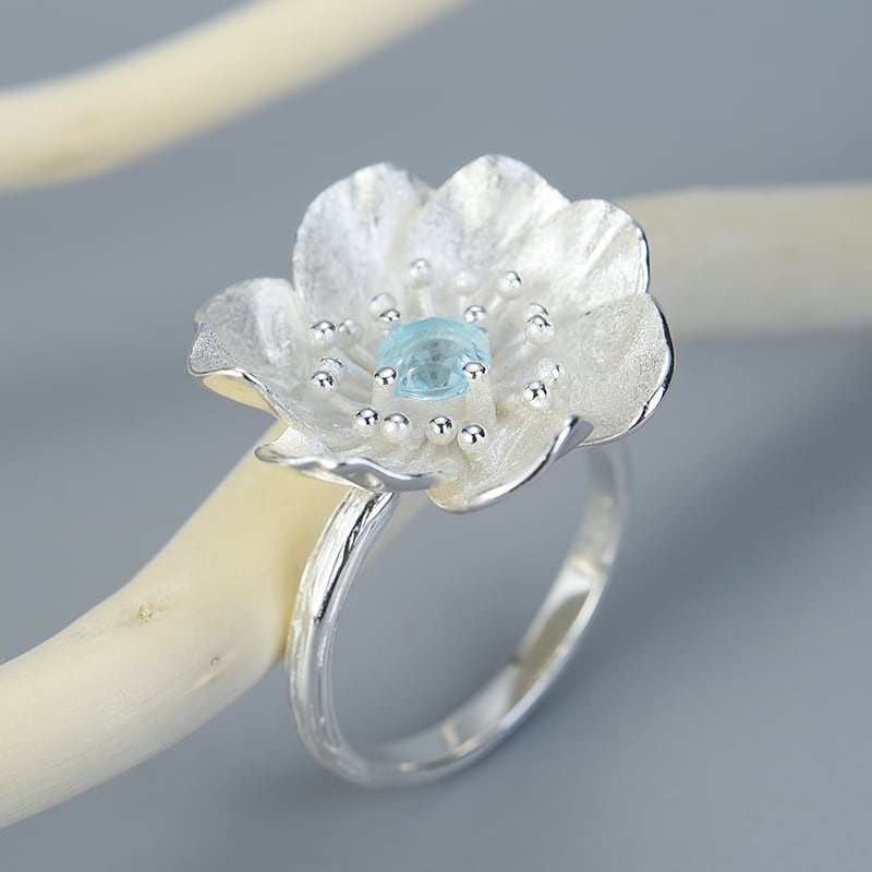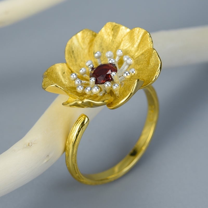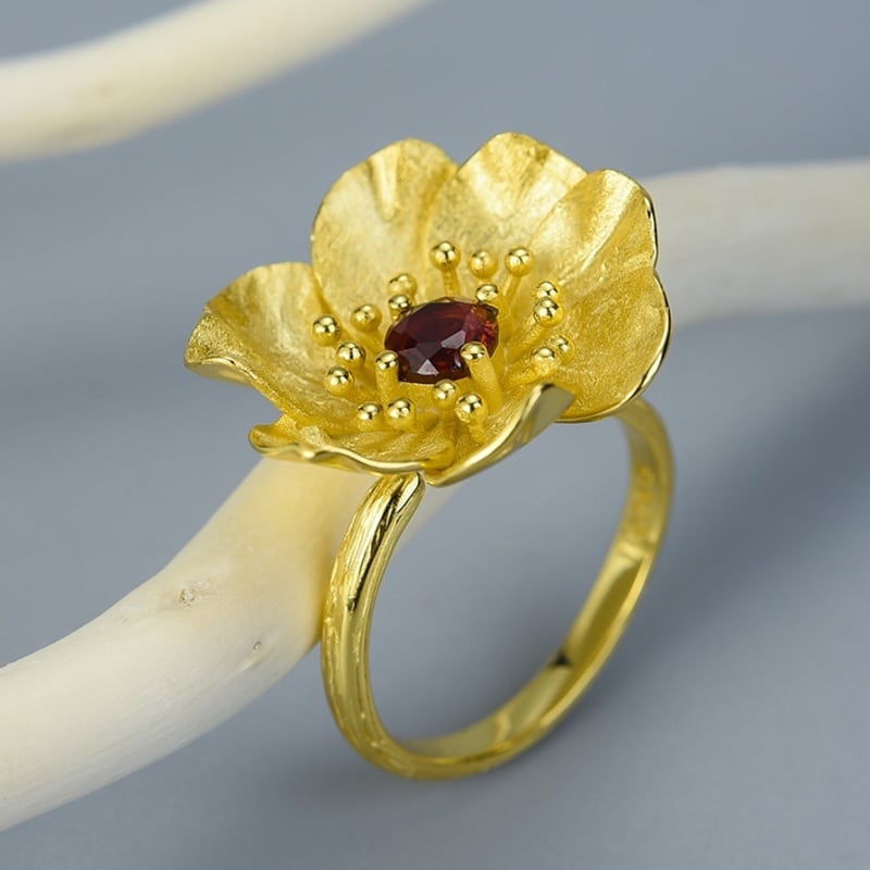 花びらの立体感が美しい、アネモネモチーフのリング。
