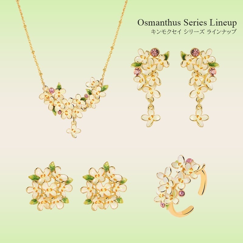 金木犀からインスピレーションを得た【Osmanthus Series -キンモクセイ-】のアクセサリー。