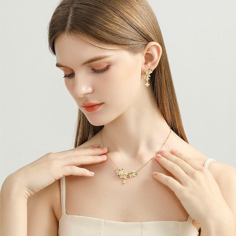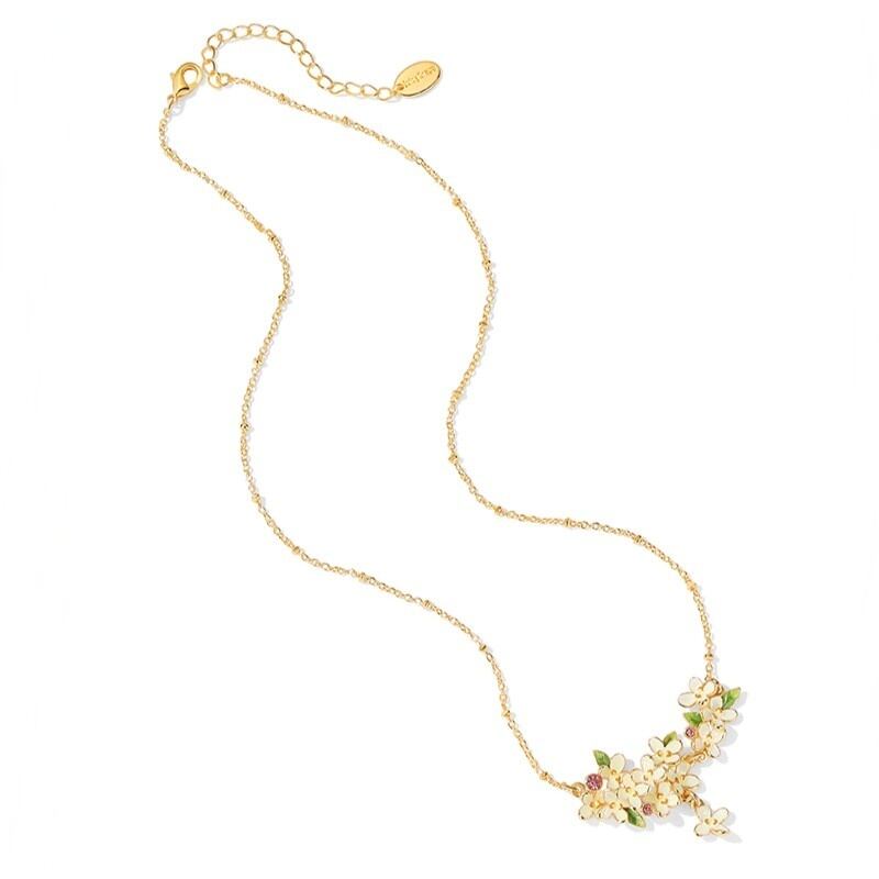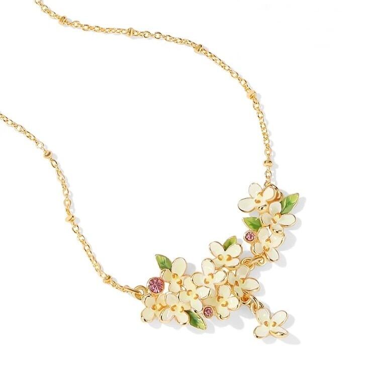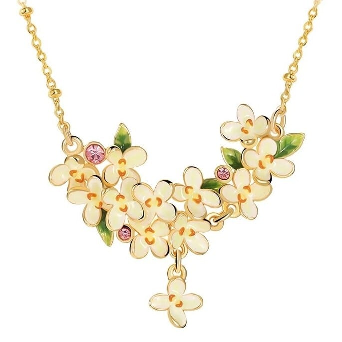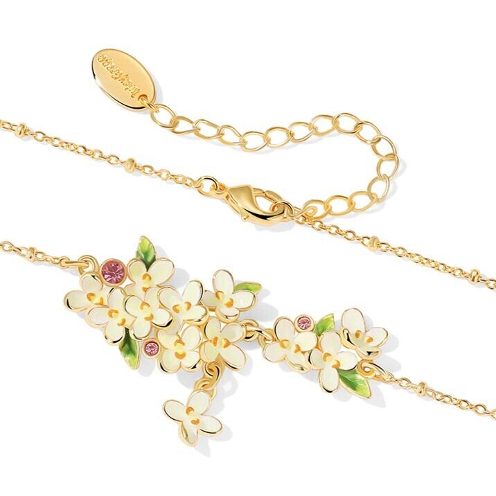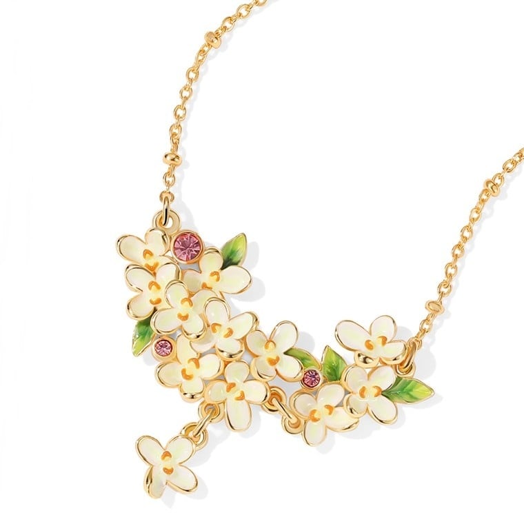 精巧な手描きのエナメル細工で、金木犀の小さな花のディテールが表現されています。