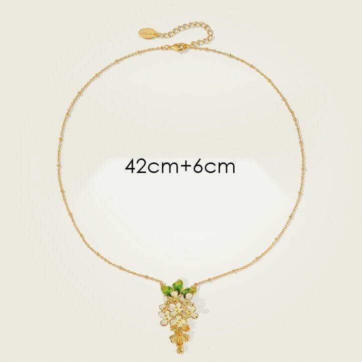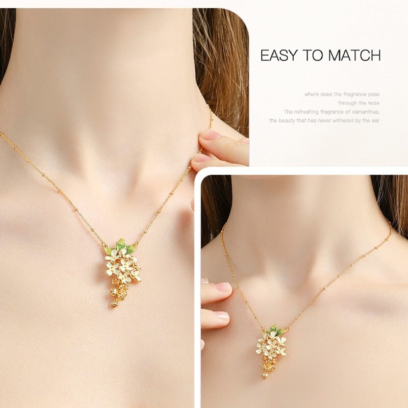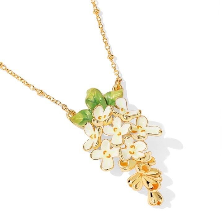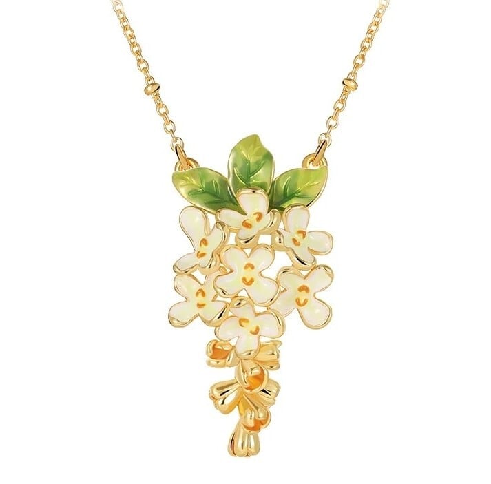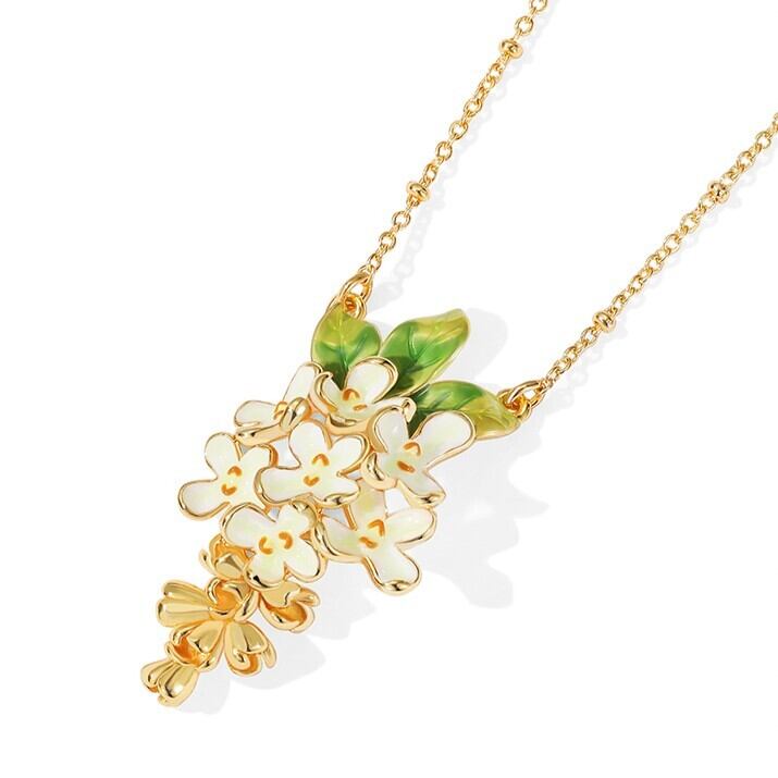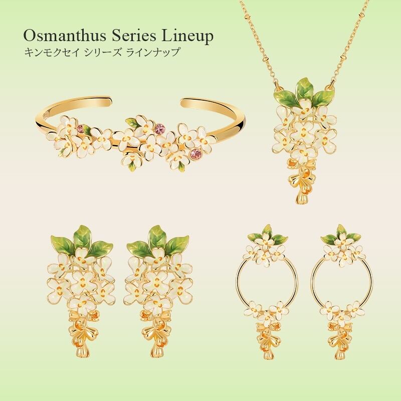 精巧な手描きのエナメル細工で、金木犀の小さな花のディテールが表現されています。