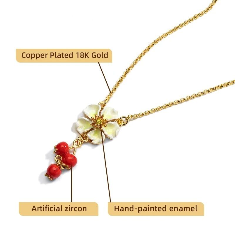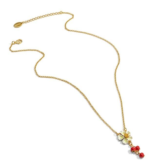 Hawthorn Flower & Fruit Pendant Necklace / サンザシ フラワー & フルーツ ペンダント ネックレス