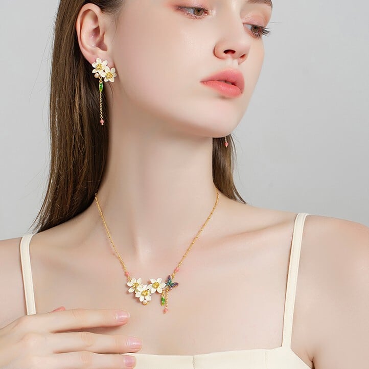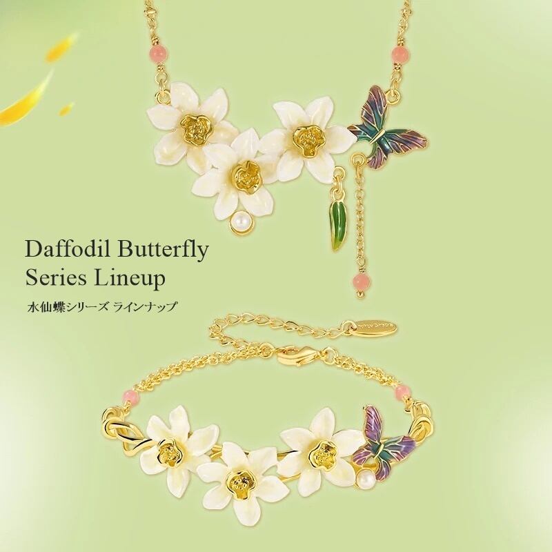 水仙と水仙にとまる蝶からインスピレーションを得た【Daffodil Butterfly Series -水仙蝶-】のアクセサリー。