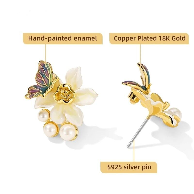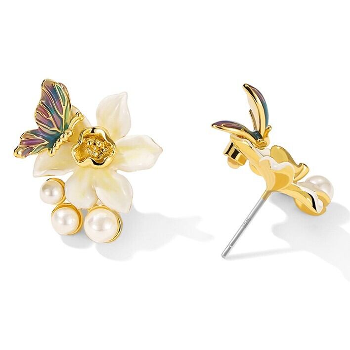 水仙と水仙にとまる蝶からインスピレーションを得た【Daffodil Butterfly Series -水仙蝶-】のアクセサリー。