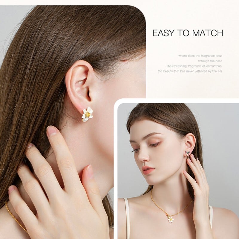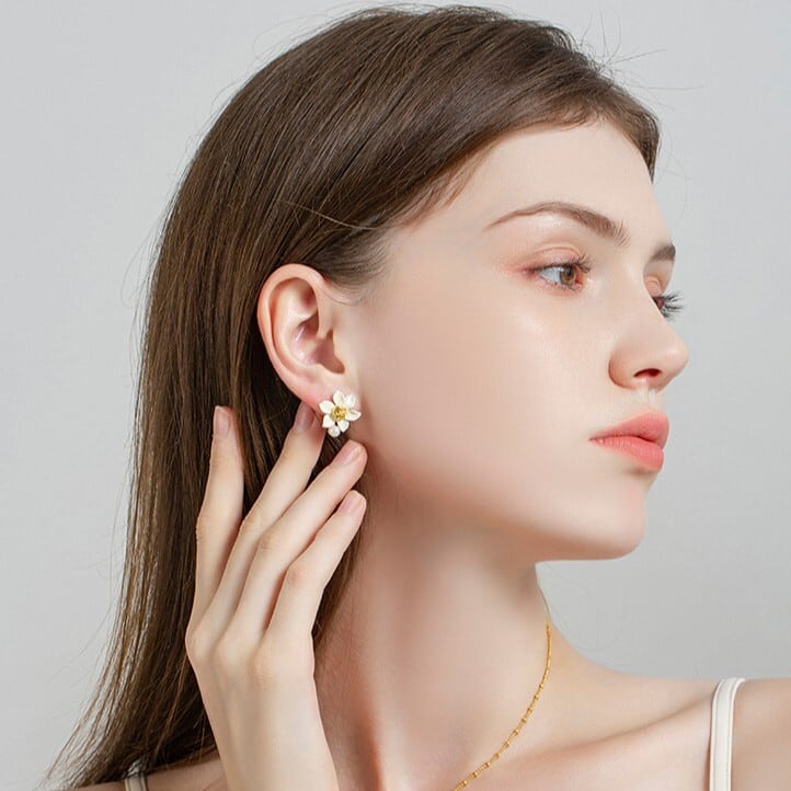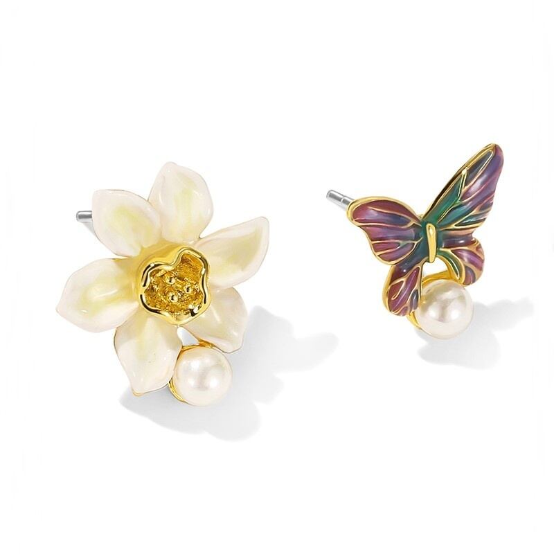 水仙と水仙にとまる蝶からインスピレーションを得た【Daffodil Butterfly Series -水仙蝶-】のアクセサリー。