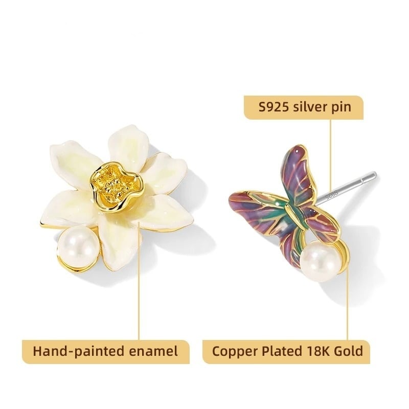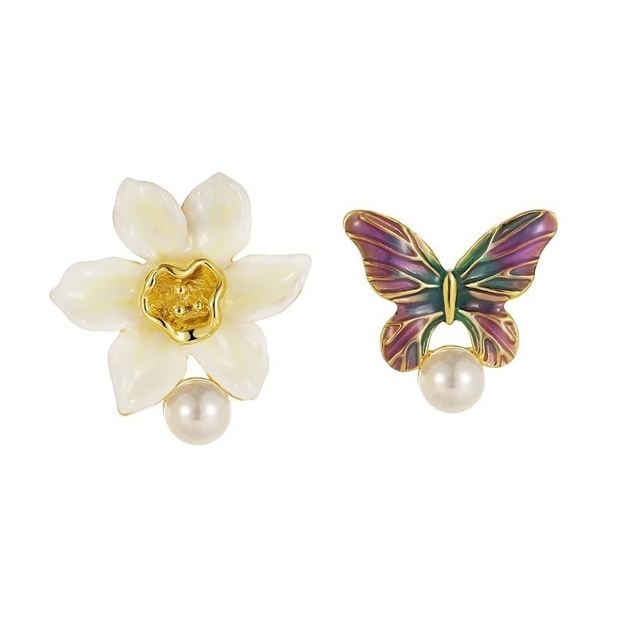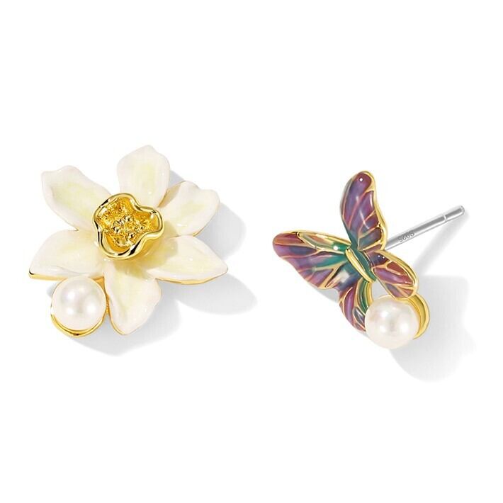 Daffodil Butterfly Asymmetrical Pierce / スイセン & バタフライ アシンメトリー ピアス