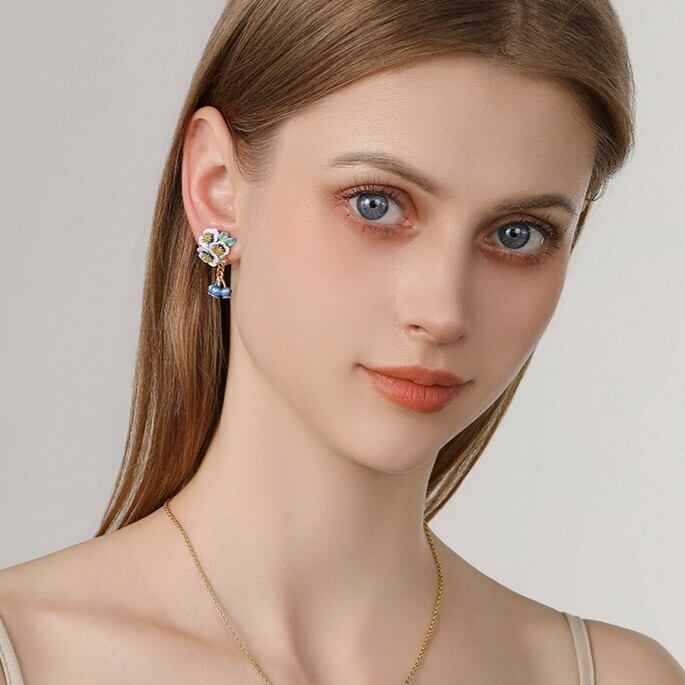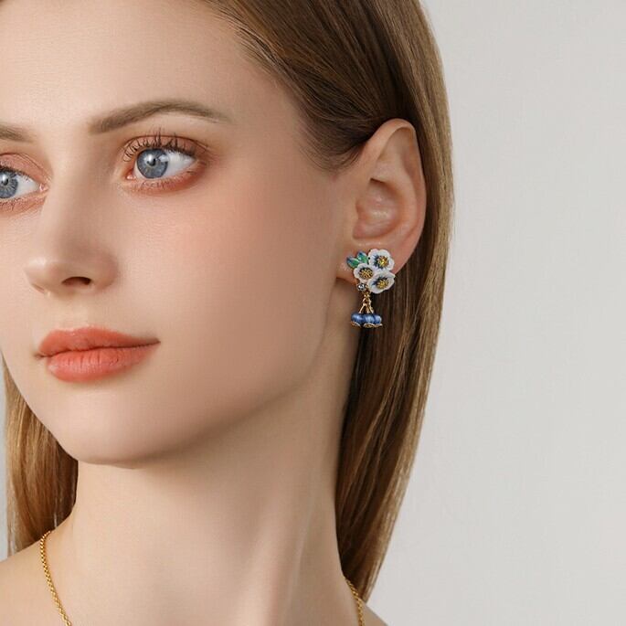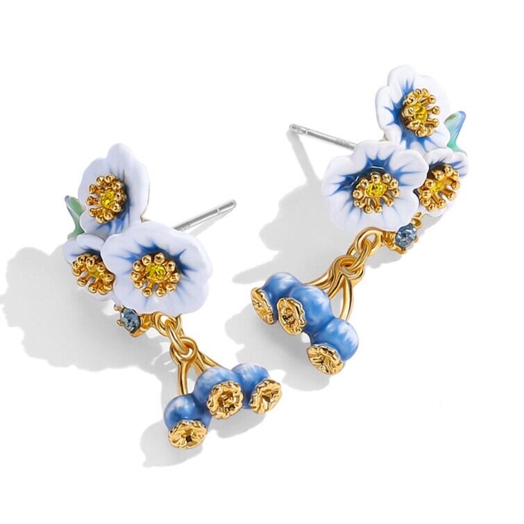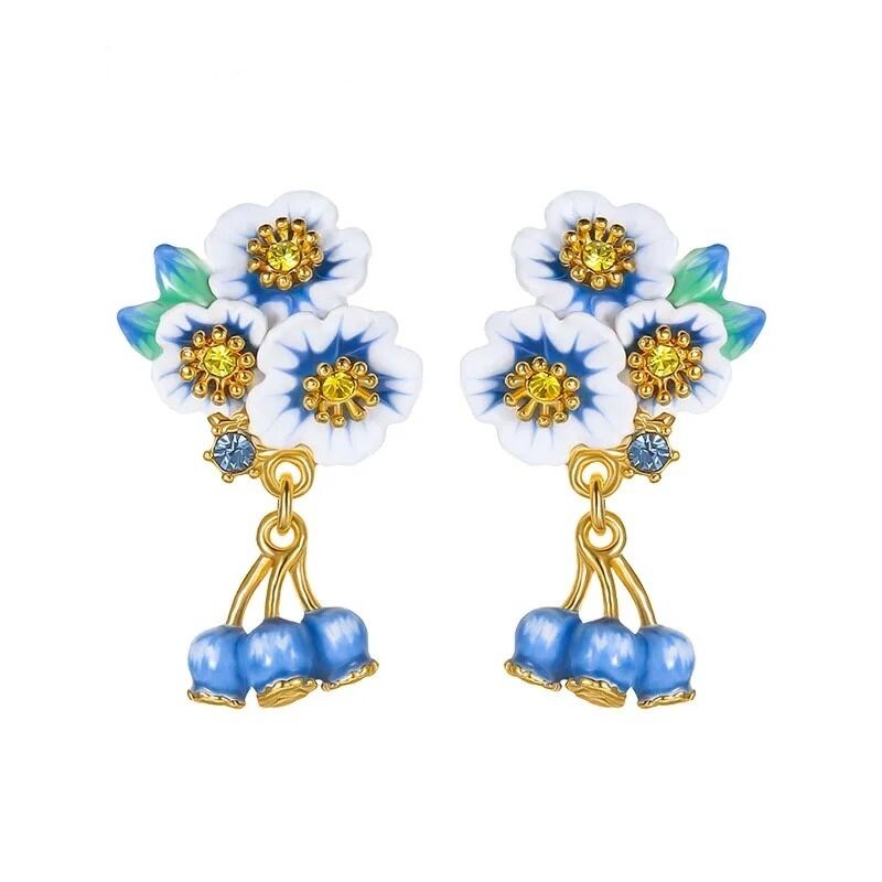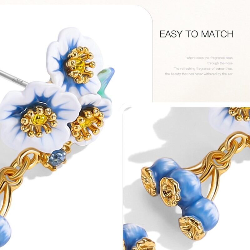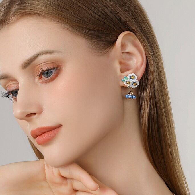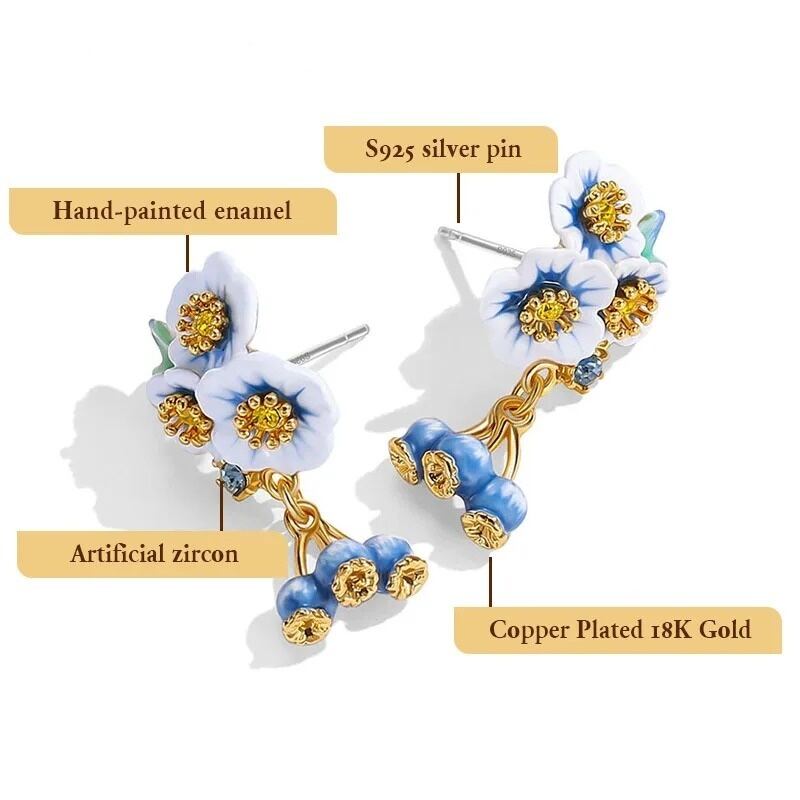 精巧な手描きのエナメル細工で、美しいグラデーションのブルーベリーや花のディテールが表現されています。