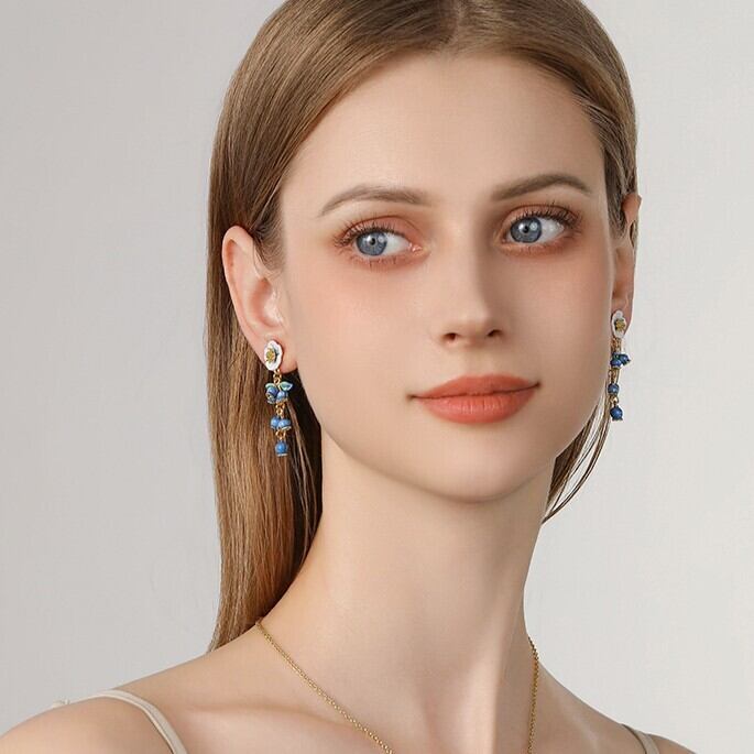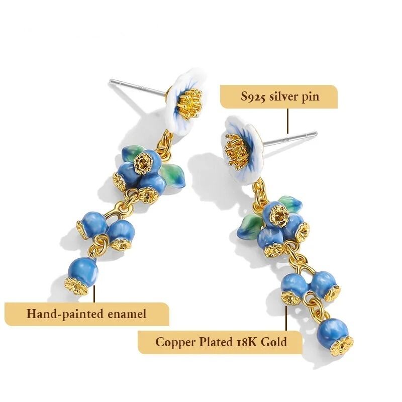 精巧な手描きのエナメル細工で、美しいグラデーションのブルーベリーや花のディテールが表現されています。
