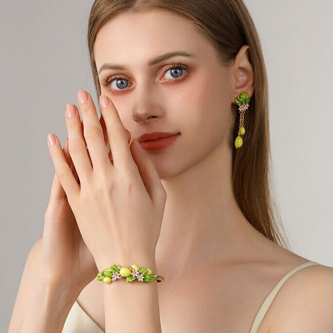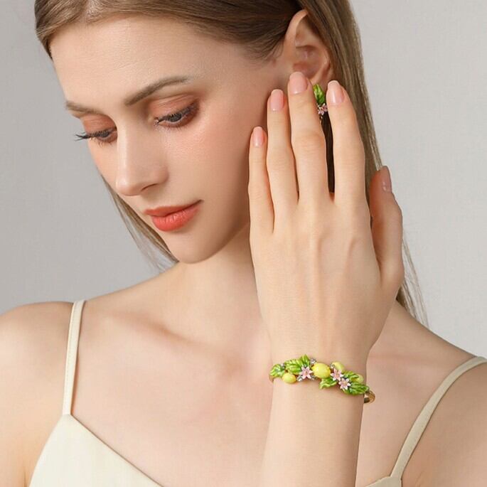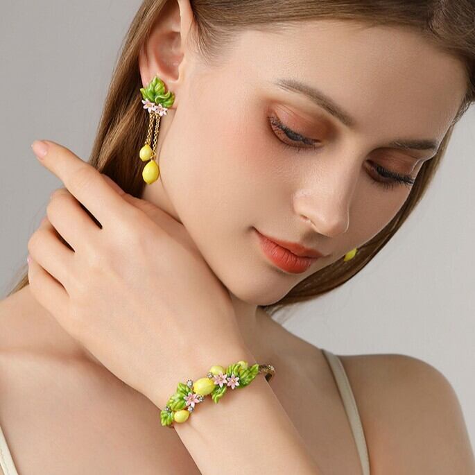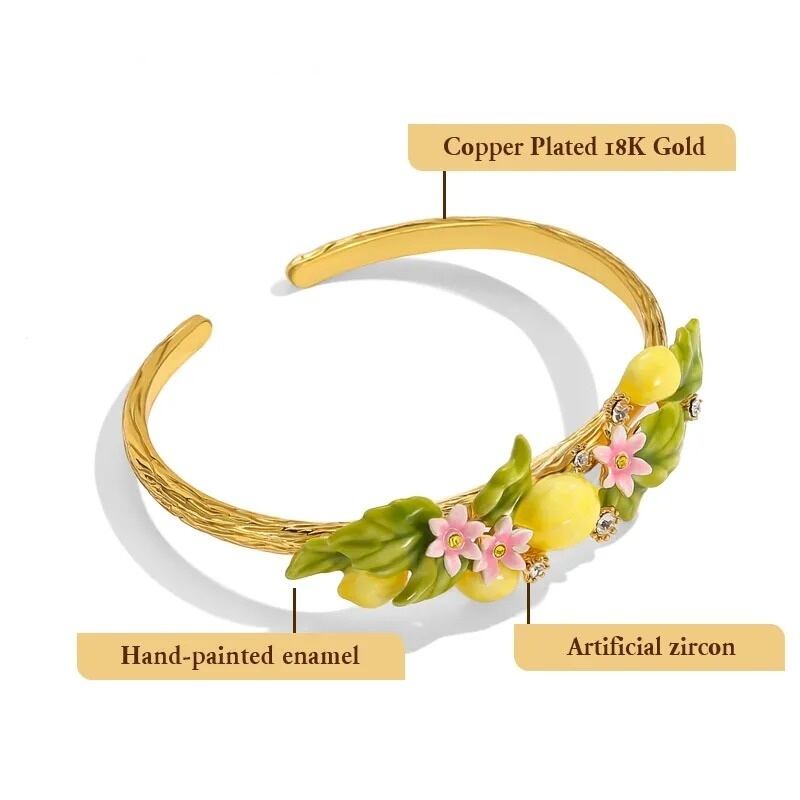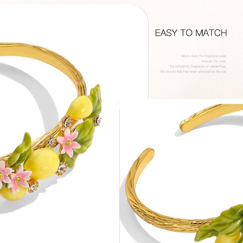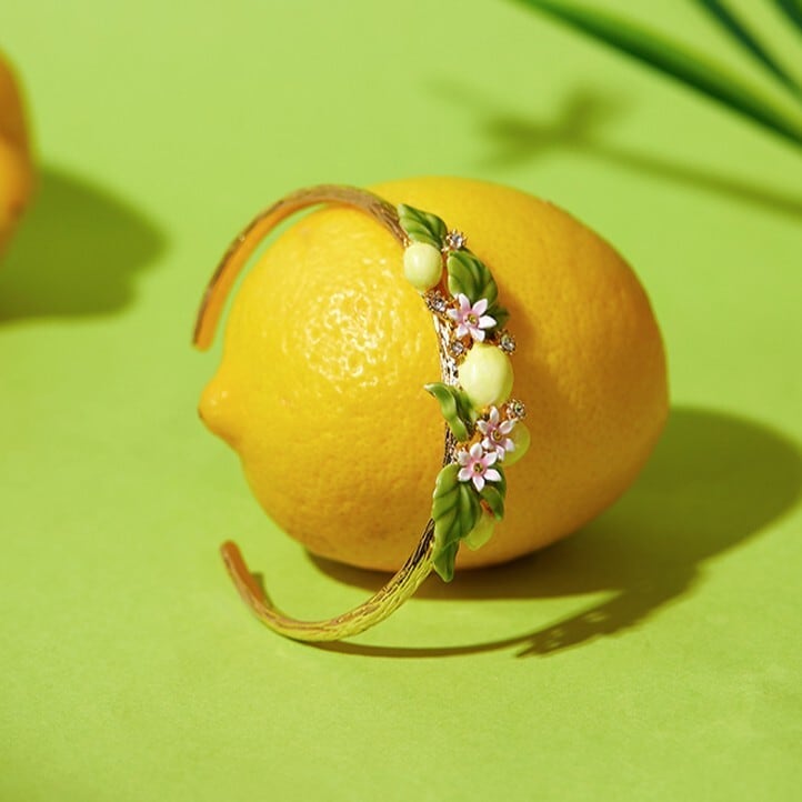 精巧な手描きのエナメル細工で、キュートなレモンのディテールが表現されています。