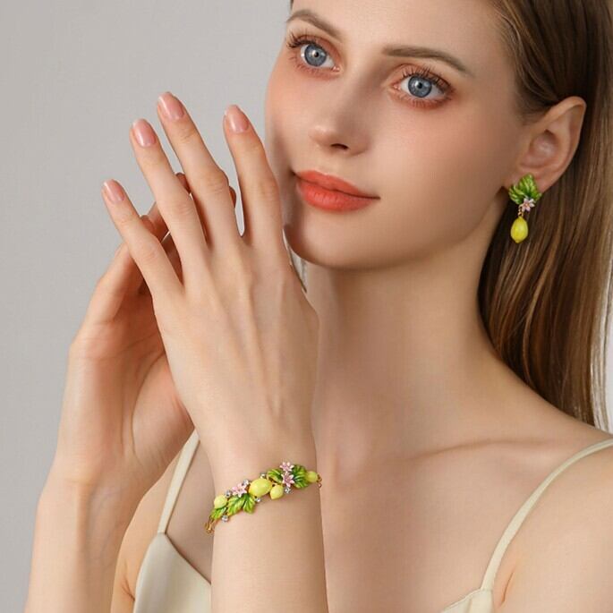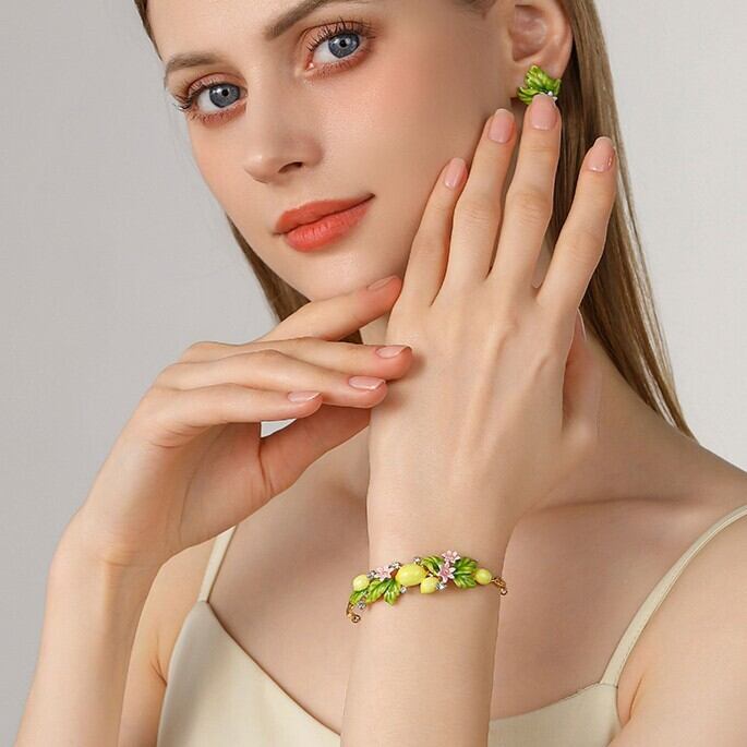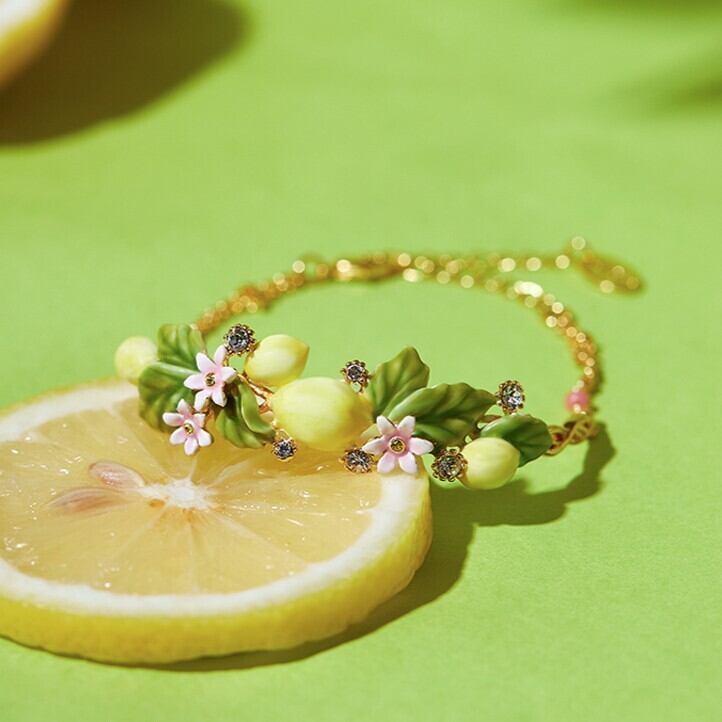 精巧な手描きのエナメル細工で、キュートなレモンのディテールが表現されています。