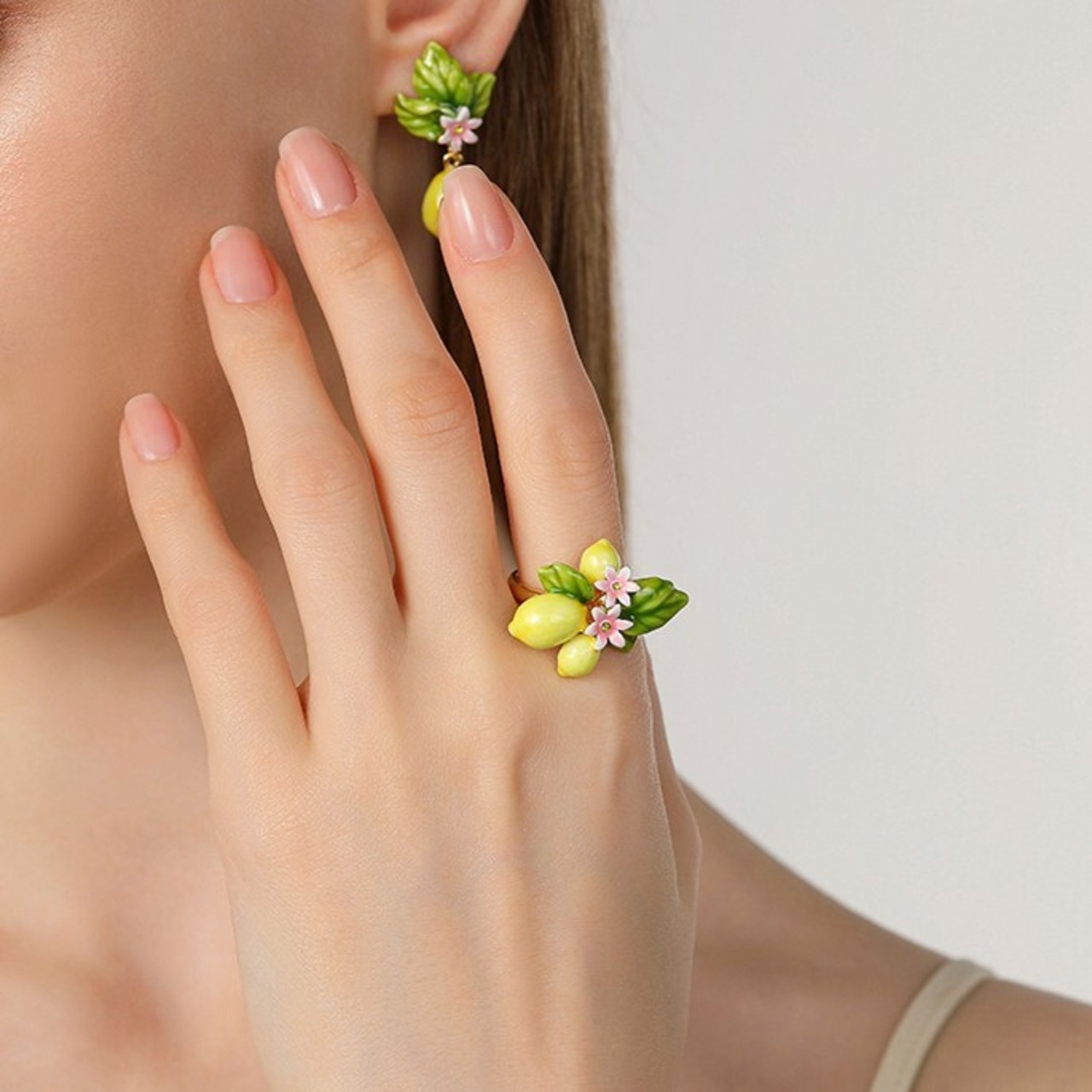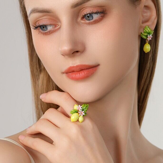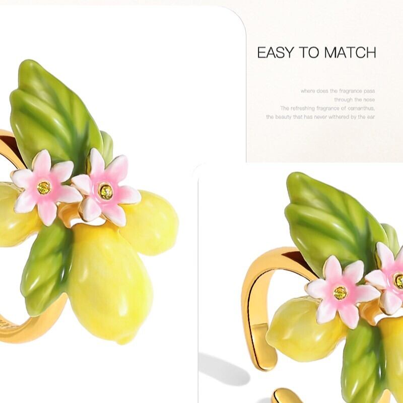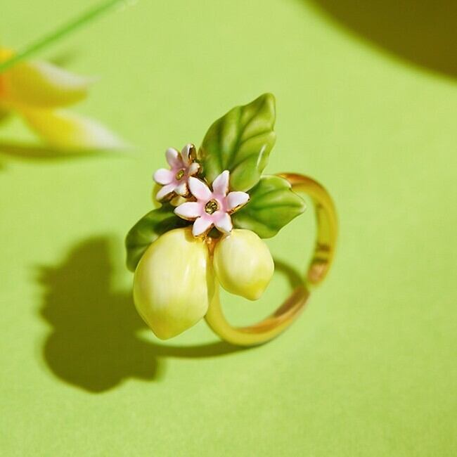 精巧な手描きのエナメル細工で、キュートなレモンのディテールが表現されています。