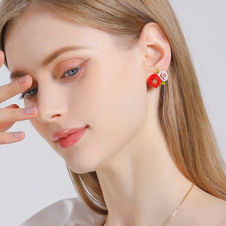 Peony Flower Red & Pink Pierce / ピオニー レッド & ピンク ピアス